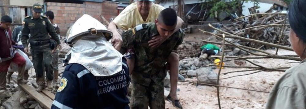 Homes were toppled, trees ripped from their roots and cars and trucks carried downstream. President Juan Manuel Santos arrived in the city on Saturday and declared a state of emergency. He also warned the death toll could rise.