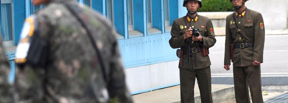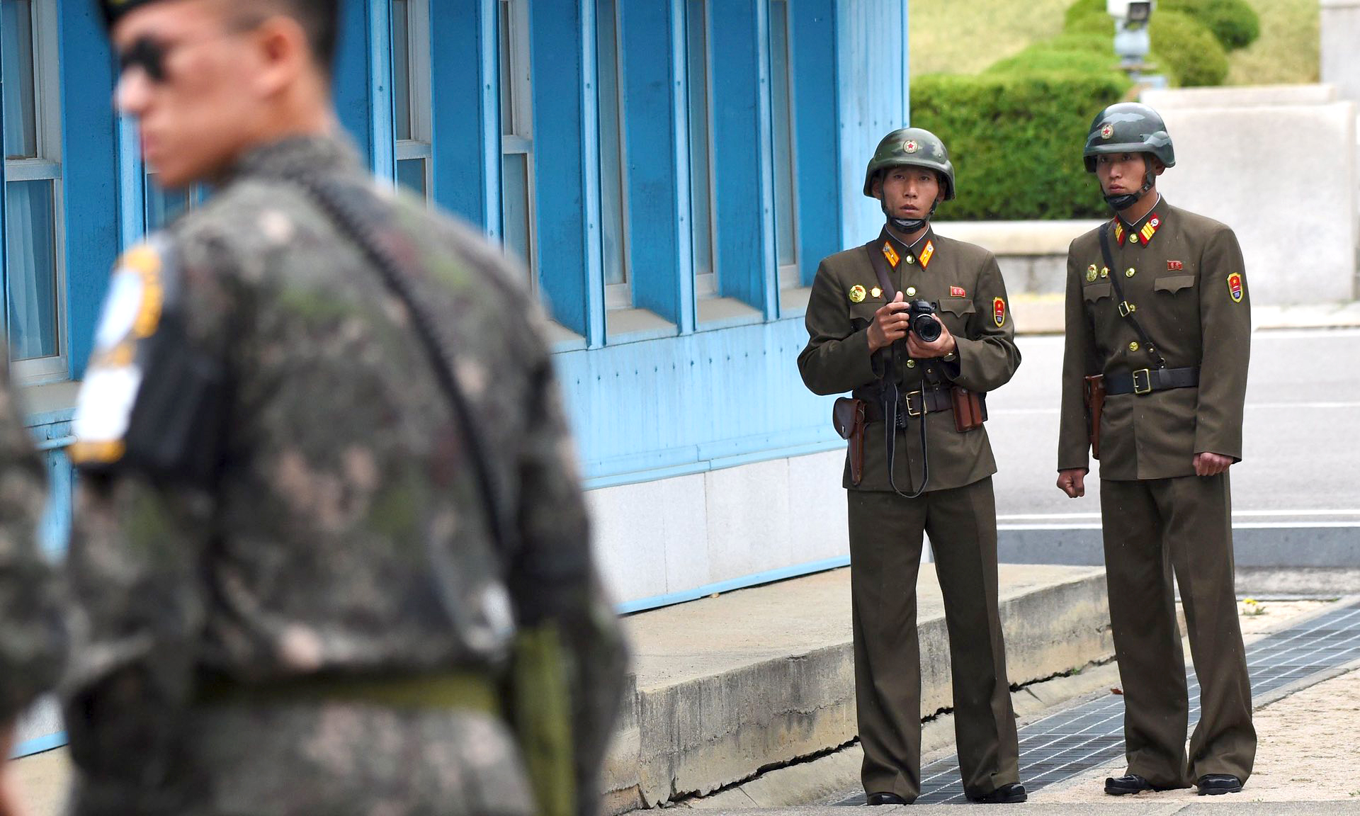 As the brown bomber jacket-clad vice president was briefed near the military demarcation line, two North Korean soldiers watched from a short distance away, one taking multiple photographs of the American visitor, AP reported.
