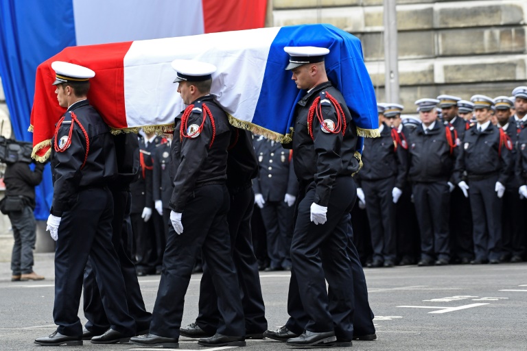 The two candidates vying to become France’s next president attended a somber ceremony on Tuesday honoring the policeman killed on the Champs Elysees, as they ramp up a campaign marked by security jitters. Centrist politician Emmanuel Macron and far-right leader Marine Le Pen stood grim-faced among hundreds of mourners, as Xavier a moving eulogy was paid to the 37-year-old officer Xavier Jugele slain in the shooting claimed by the self-styled Islamic State terrorist group on the most famous street in Paris just days before the first round of the election.