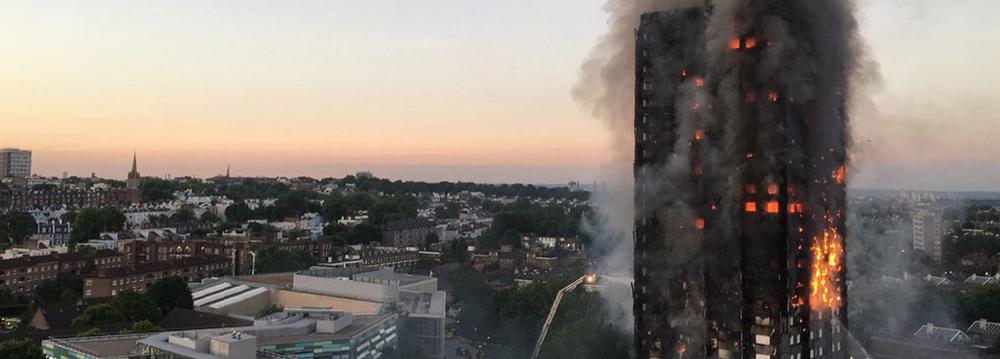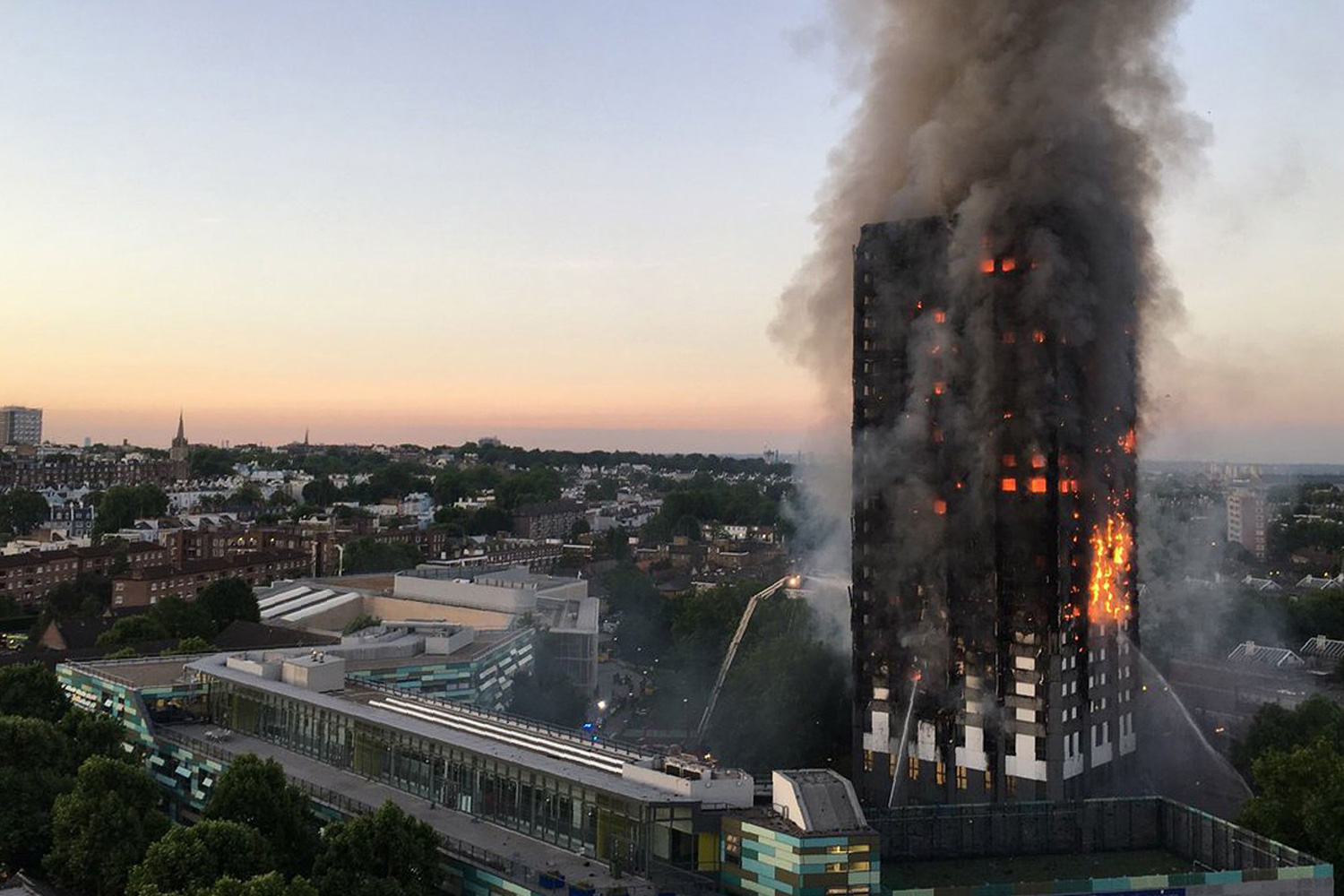Flames shot from windows all the way up the 24-story Grenfell Tower in North Kensington as more than 200 firefighters battled the blaze. A plume of smoke stretched for miles (kilometers) over the capital, AP reported.