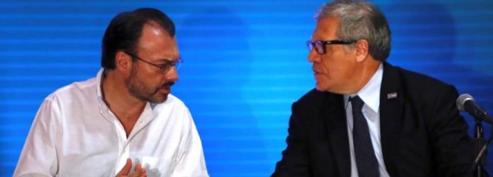 Discussions among OAS foreign ministers in Mexico fell apart when a proposed resolution calling for representative democracy in the oil-rich nation failed to win the required number of votes to pass. Representatives from Venezuela stormed out of the talks, claiming other nations would soon follow.