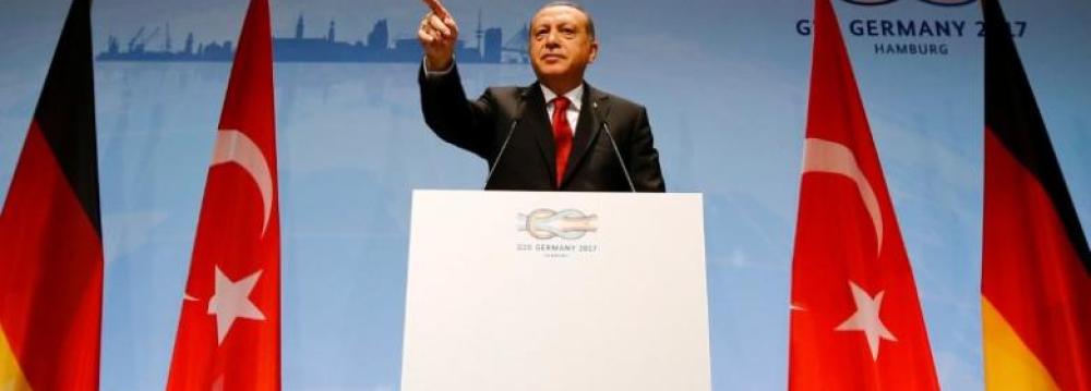“We will not hesitate to use our right to self defense against formations threatening the security of our country,” Erdogan told a news conference at the G20 summit in Hamburg, according to the web site.