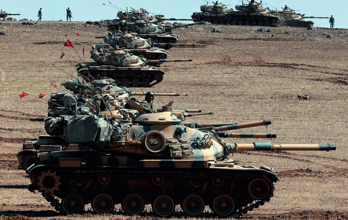 Dozens of Turkish tanks dotted an open field just a few kilometers from the Iraqi border on Monday, according to footage on CNN-Turk television, Bloomberg reported.