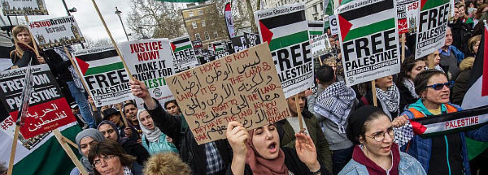 A statement was read out from Labor leader Jeremy Corbyn. He said Palestinians “have a right to protest against their appalling conditions, the blockade, the continued occupation on Palestinian land, their right to return to their homes and their right to self determination”.