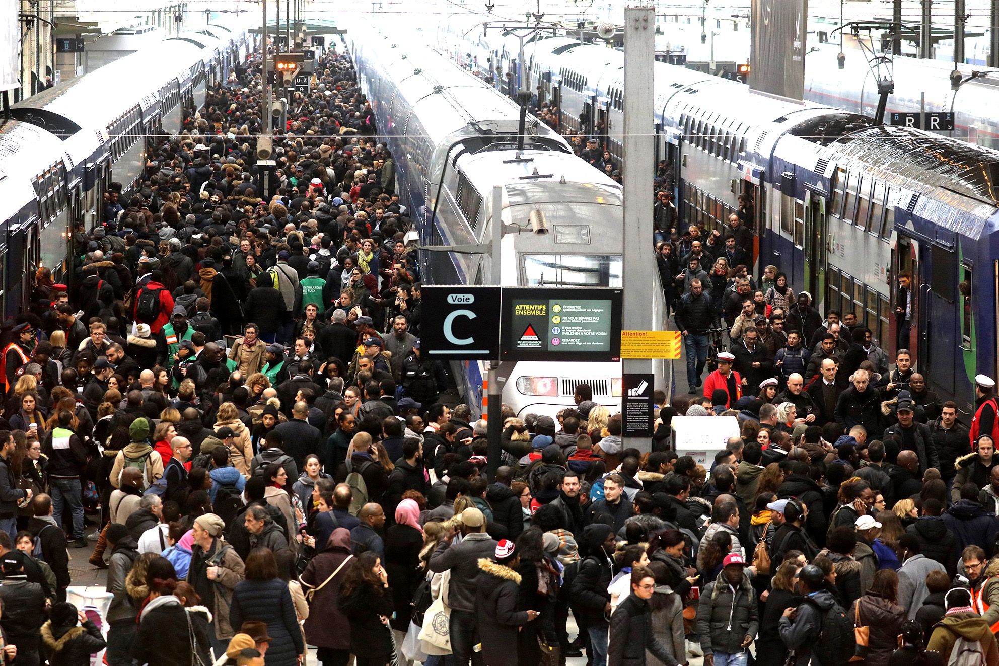 Just over a third of workers needed to make the train network run smoothly were expected to walk out on Sunday, a dip in participation compared to the last 48 hours of walk-outs on Tuesday and Wednesday, the SNCF said.