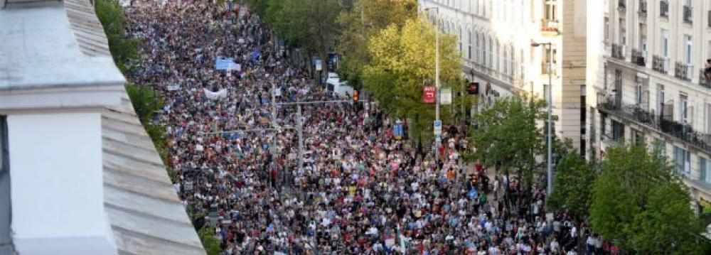 Tens of thousands of Hungarians took to the streets in Budapest for a second consecutive Saturday to protest against newly reelected Prime Minister Viktor Orban. The crowd marched through the city to a rally where speakers demanded a non-partisan public media, AFP reported. Campaigning hard against immigration, the 54-year-old Orban’s overwhelming victory on April 8 saw his Fidesz party secure around half the vote. But among criticisms regarding the fairness of the election, observers from the Organization for Security and Cooperation said the campaign was marked by media bias. As part of sweeping reforms since he came into power in 2010, Orban has turned the public media channels into what his critics call “government mouthpieces”. Many of the demonstrators, most of whom were young, chanted “democracy” and brandished Hungarian and European Union flags. More demonstrations will be held in provincial cities in coming weeks, he added. Last Saturday some 100,000 protestors held a protest in Budapest days after Orban’s win.