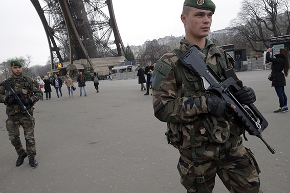 France will have more than 10,000 soldiers mobilized on home soil by Tuesday, defense minister Jean-Yves Le Drian announced Monday, amid heightened efforts to security and track down possible accomplices in the wake of the deadliest terrorist attacks in France in half a century.