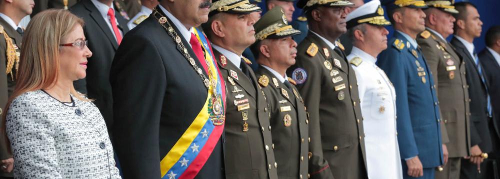 The incident broadcast live on state television on Saturday occurred as Maduro spoke, flanked by his wife and defense minister. An explosion was heard and the 55-year-old leader was led off stage. Military personnel broke ranks and ran. Then, the broadcast abruptly ended. Photographs from the scene showed at least one soldier with blood pouring down his face.