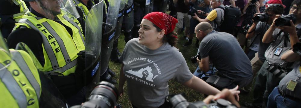 The American city of Charlottesville marked the anniversary of last summer’s white supremacist violence that sent ripples through the country with largely peaceful vigils and other events, but police had a brief, tense confrontation with demonstrators angry over the heavy security presence.