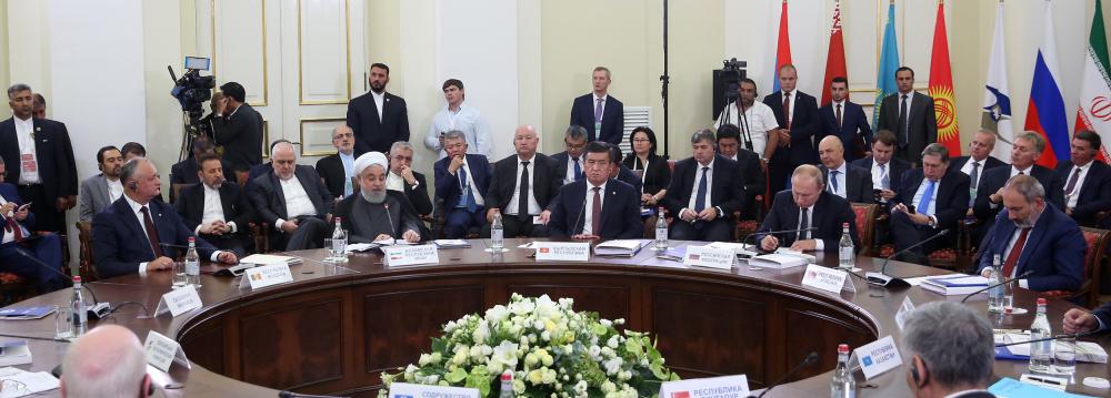 Rouhani held bilateral talks with his counterparts and other senior officials on the sidelines of the main event on Monday and Tuesday, including President Vladimir Putin of Russia, Armenian President Armen Sarkissian, Armenian Prime Minister Nikol Pashinyan, Kazakh President Kassym-Jomart Tokayev and Singaporean Prime Minister Lee Hsien Loong.