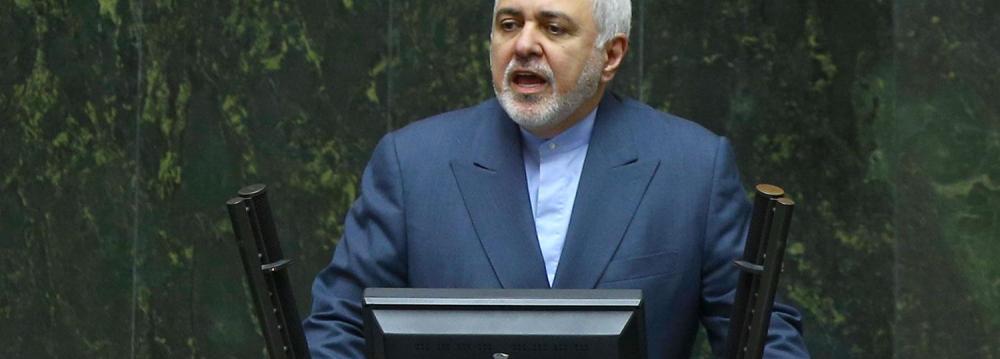 Foreign Minister Mohammad Javad Zarif spoke in parliament on Sunday to elaborate on the ministry's diplomatic efforts to boost the country’s economic ties with the world.
