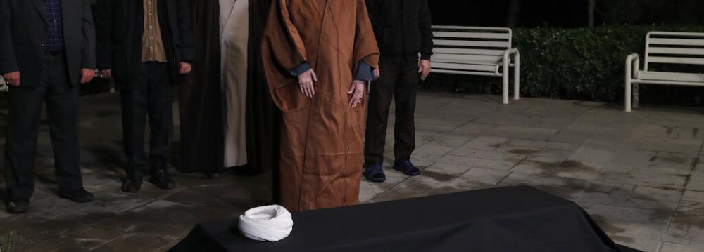 The Leader led the funeral prayer on Saturday in his office’s open area before his body was transferred to Qom for burial.