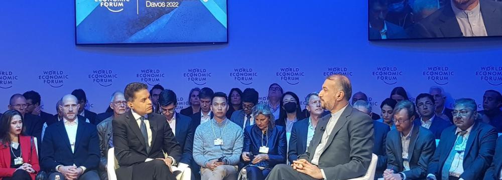Addressing the World Economic Forum in Davos on Thursday, Foreign Minister Hossein Amir-Abdollahian said a window for diplomacy with the US remained open and that Iran is serious about reaching a durable agreement with Washington.