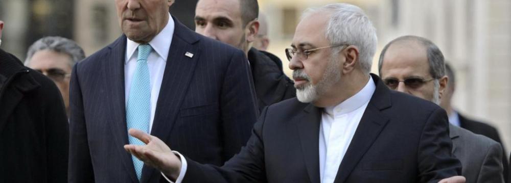 Zarif and Kerry held two days of talks on Sunday and Monday in Geneva to narrow gaps in the negotiating positions in the broader talks between Iran and the six major powers (the United States, France, Britain, Russia, China and Germany) on a comprehensive deal to resolve the 12-year dispute over Tehran's nuclear work.