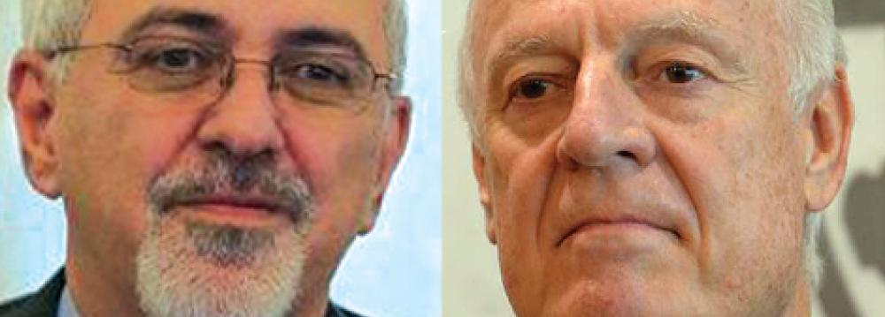 Zarif made the remarks in a meeting with UN envoy on Syria Staffan de Mistura in New York on Tuesday on the sidelines of the UN General Assembly, in which the two officials discussed the latest developments in Syria.