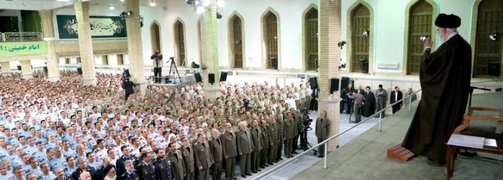 Underlining the high spirits of the armed forces, the Leader said, "Despite its efforts to develop its defense and military capabilities, Iran poses no threat to neighboring and regional countries."