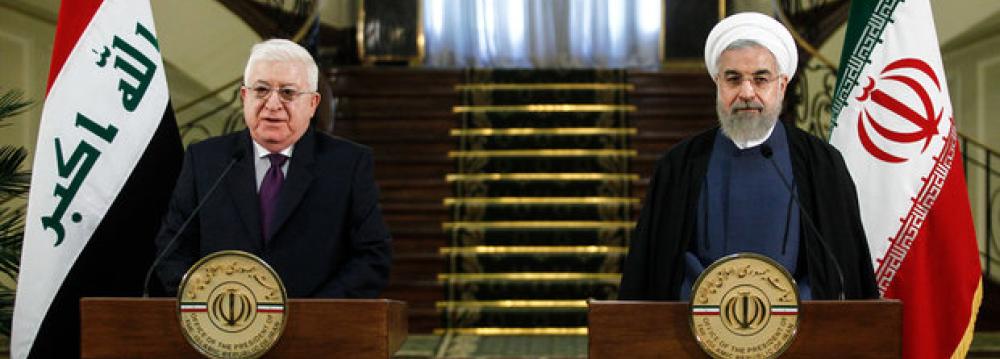 President Hassan Rouhani and his Iraqi counterpart Fuad Masum issued a joint statement on Thursday to express mutual respect and commitment to bilateral agreements and to advocate expansion of ties in the fields of mutual interest, IRNA reported.