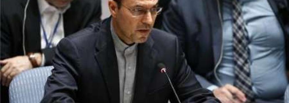 In a speech at a Monday UN Security Council meeting on the situation in Afghanistan, Dehqani said Iran has always condemned terrorist attacks in the Central Asian country as well as any cooperation with terrorist groups operating there as Iran believes such activities undermine peace in Afghanistan, Press TV reported.