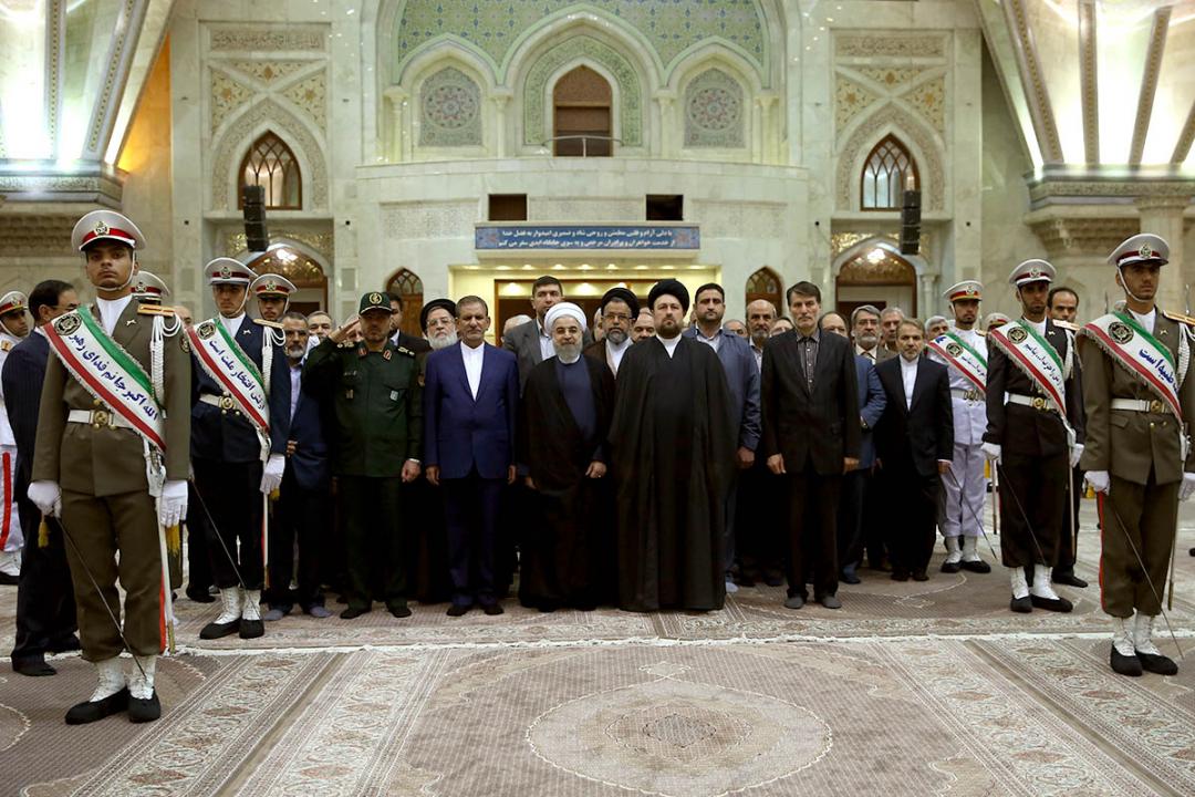 President Hassan Rouhani and members of the Cabinet visited the mausoleum of the late Imam Khomeini, founder of the Islamic Republic, on Monday to renew allegiance to his ideals.