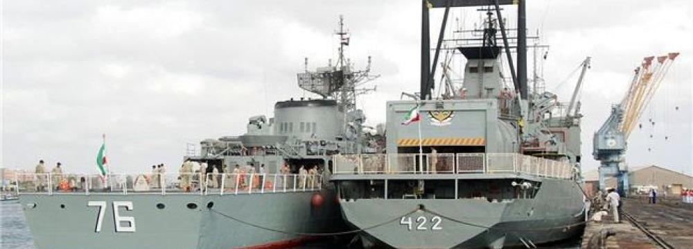 The navy's 32nd fleet, comprised of the Jamaran destroyer and the Bushehr warship, set sail on Tuesday from the southern port city of Bandar Abbas for the open seas. The mission of the fleet is to protect the security of Iranian commercial ships and tankers in international waters. The warships will sail the Gulf of Oman, the northern Indian Ocean, and the Gulf of Aden during their journey.