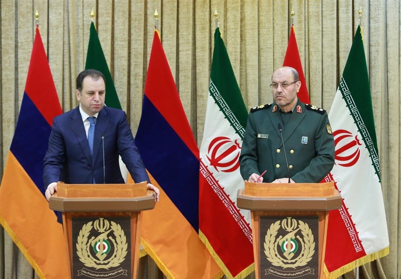 The Armenian defense minister arrived in Tehran late Monday and met his Iranian counterpart after an official welcoming ceremony on Tuesday.