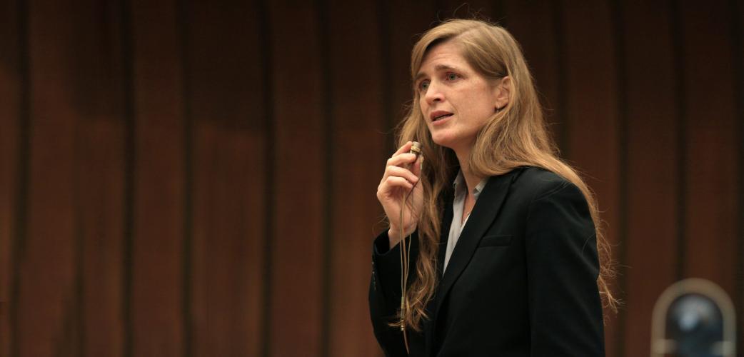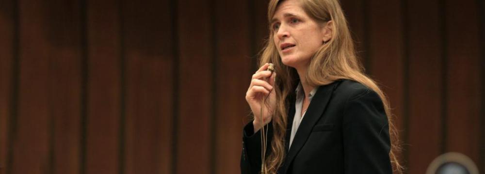 The remarks from Ambassador Samantha Power were in a speech on Monday at the McConnell Center at the University of Louisville. Among those attending was the center's co-founder, Senator Mitch McConnell, the new US Senate majority leader, Reuters reported.