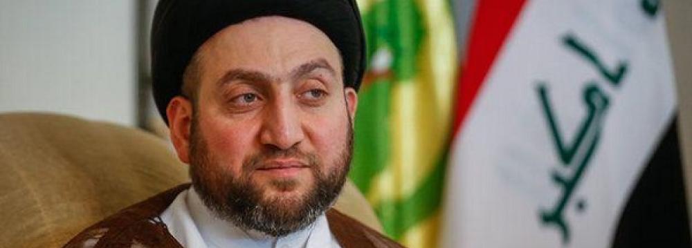 Head of the National Wisdom Movement of Iraq Ammar al-Hakim has welcomed cordial relations between Baghdad and Tehran, and said Iran has greatly helped his country in fighting the terrorist groups. “Iran has special ties with its neighbors, particularly Iraq, which should be taken into account by other countries,” Hakim said, Fars News Agency reported. He urged regional countries to engage in constructive talks to put an end to regional conflicts. In relevant remarks earlier in the month, Ammar al-Hakim deplored the US unilateral sanctions against Iran. “We believe that weakening Iran will neither benefit Iraq nor any of the regional states that want to impose an economic siege on the country, as the aftershocks of this move will not be limited to Iran and affect the entire region,” the Iraqi cleric said. Iraq’s Prime Minister Haider al-Abadi said on August 7 his country would abide by US sanctions against Iran to protect Iraq’s own interests, causing tensions in Tehran-Baghdad relations.