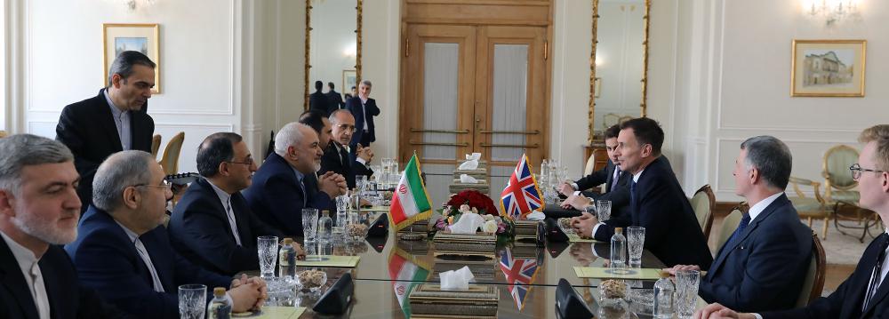 Britain’s Secretary of State for Foreign and Commonwealth Affairs Jeremy Hunt met his Iranian counterpart, Mohammed Javad Zarif, to exchange views on mutual relations and regional challenges.