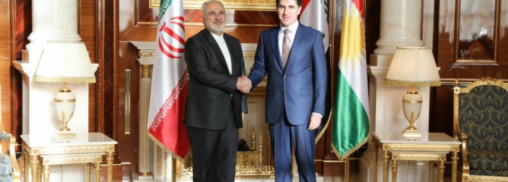 Zarif was scheduled to meet Masoud Barzani, the leader of Kurdistan Democratic Party, and Masrour Barzani, chancellor of the Kurdistan Region Security Council as well as officials of Erbil’s Chamber of Commerce.