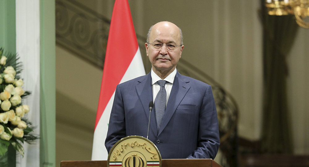 Iraqi President Barham Salih voiced his disapproval of US President Donald Trump’s remarks about the purpose of the US forces’ presence in his country, saying Trump had not asked Baghdad’s permission for his troops based in the Arab country to “watch Iran”.