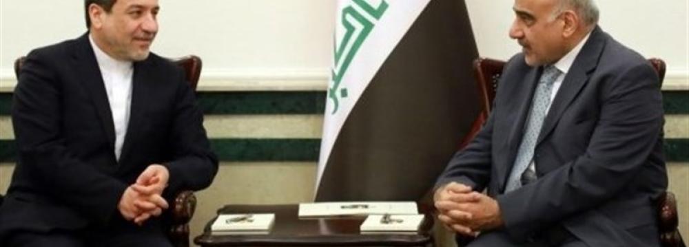 Deputy Foreign Minister Abbas Araqchi met Iraqi Prime Minister Adel Abdul Mahdi in Baghdad on Monday to discuss areas of mutual interest and common unresolved issues.
