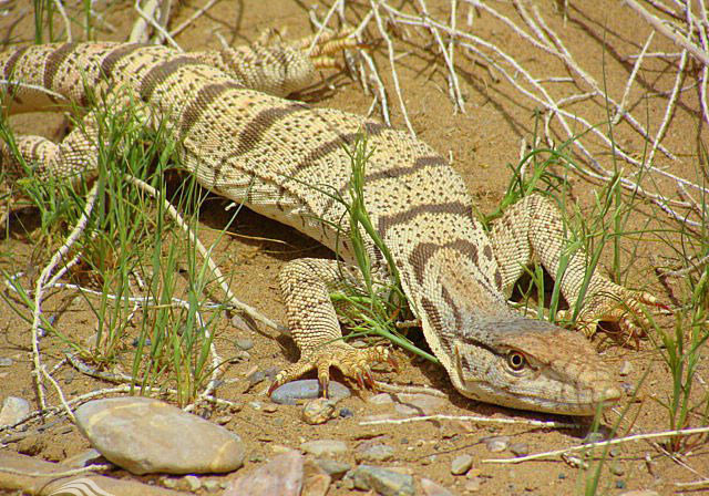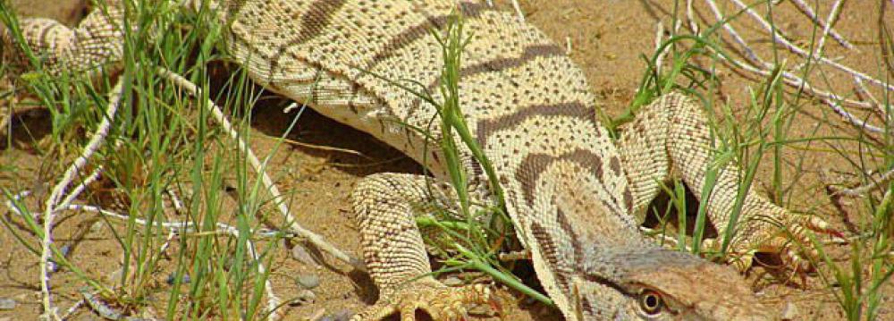 The desert monitor is a species of monitor lizards with three subspecies: Grey, Caspian and Indian. The former two are found in Iran, of which the Caspian monitor is the largest lizard species in the country.