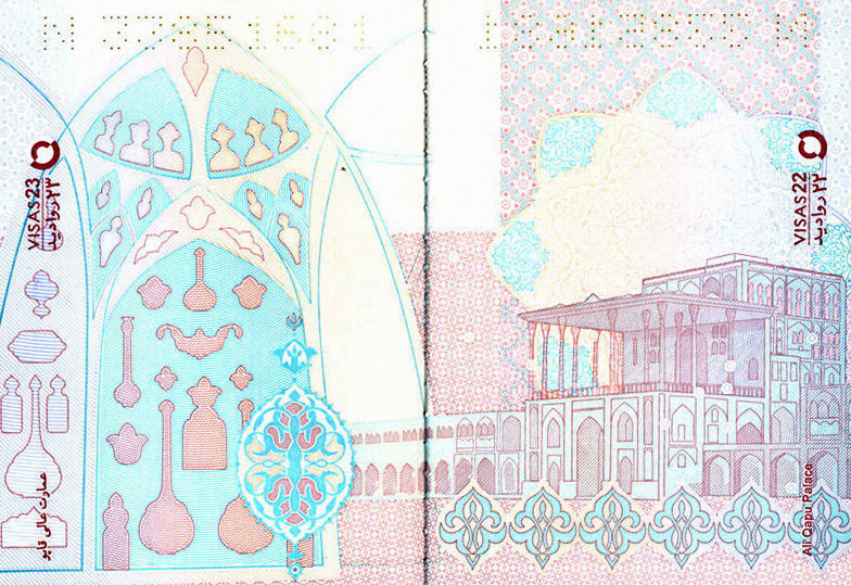 The shrine of Imam Reza (AS), Persepolis, Bam Citadel, mausoleums of Hafez, Ferdowsi, Abu Ali Sina, Khayam, Attar, Sheikh Safi al-Din Ardabili, Ali-Qapu Palace, Imam Khomeini Mosque in Isfahan, Boroujerdi House in Kashan, Imam Khomeini Mosalla and Azadi Tower are among the places depicted in the passport.