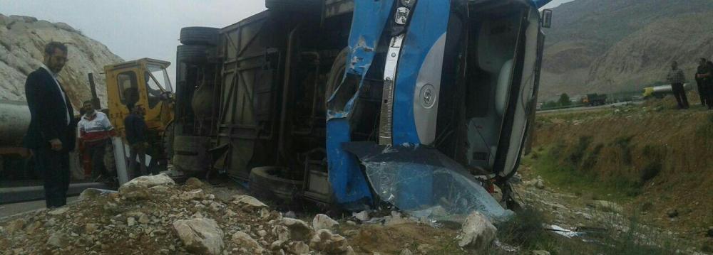 The minibus, which was carrying 16 German tourists, overturned while returning from Pasargadae to Shiraz. Officials say the driver lost control of the speeding minibus on the slippery road, which led to the crash.