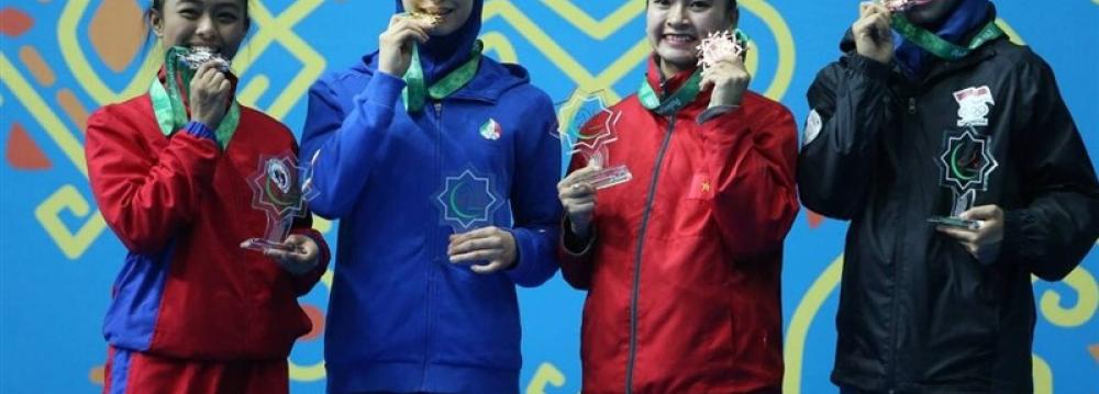 Iranian taekwondo practitioner Marjan Salahshouri claimed Iran’s 17th gold medal on day 7 of the 5th Asian Indoor and Martial Arts Games (AIMAG) held in Ashgabat, Turkmenistan, on Friday.