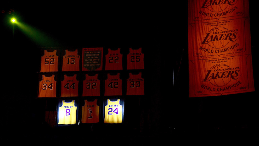 The 39-year-old won three NBA titles when he wore the No. 8 jersey and two championships with the No. 24, representing Los Angeles for the entirety of his professional career.