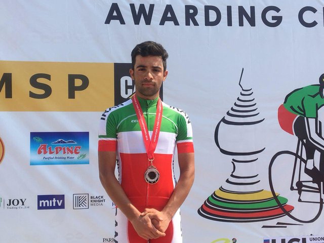 Mohammad Ganjkhanlou in the road category finished second after a Japanese cyclist in the first place and a Mongolian went for the bronze.