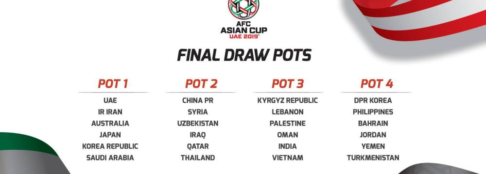 The 12 teams, which received an automatic bye into the Asian Cup 2019 after qualifying for the FIFA World Cup Russia 2018-Asian Qualifiers Final Round, have already secured their places in pots one and two, and have been allocated spots following the latest FIFA ranking.