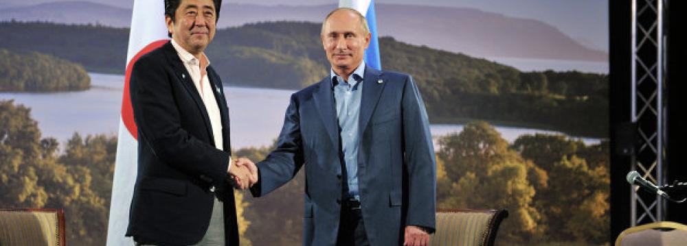 “Relations have been developing rather successfully both in the economic and political spheres,” Russia’s President Vladimir Putin told Japanese Prime Minister Shinzo Abe at the start of their hour-long evening meeting Sunday in Beijing. “When I mention the political sphere, I also mean the resumption of our talks about concluding a peace agreement,” Bloomberg reported.