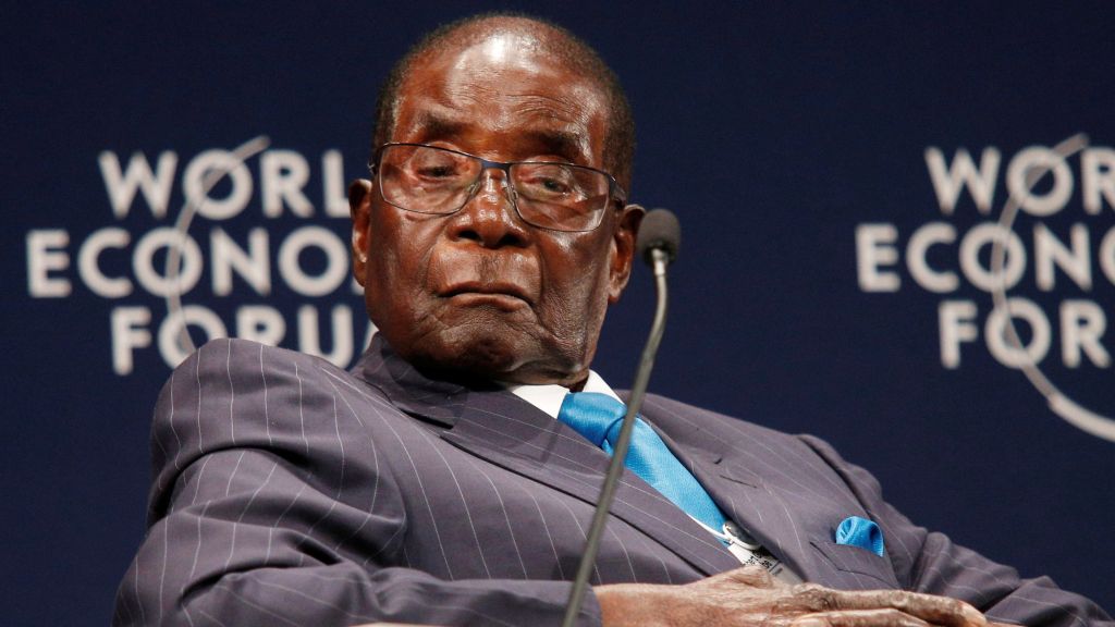 Zimbabwe’s 93-year-old president, Robert Mugabe, sat slumped in his chair, wringing his hands, as he told a World Economic Forum for Africa panel discussion Friday in a low murmur that his country was not a fragile state.