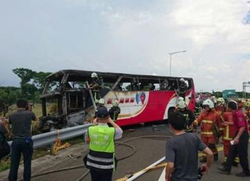 InternationalTwenty-six people are believed killed after a bus carrying tourists caught fire and burst into flames after an accident on a highway in Taiwan, China.