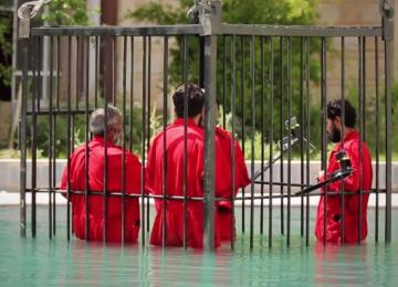 The Islamic State released a video showing the killing of 16 men by drowning some in a cage, decapitating others with explosives, and firing a rocket-propelled grenade into a car.
