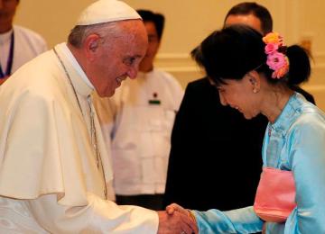 InternationalPope Francis has avoided referring to Myanmar’s persecuted Muslim minority by name in a major speech after meeting the country’s de facto leader, Aung San Suu Kyi.