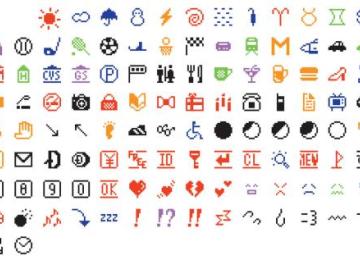Smiley faces and images of food and cats designed almost 20 years ago by a Japanese phone company and used in digital messages worldwide have now attained the status of art.