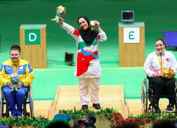 Iran’s female shooter Sareh Javanmardi won Iran’s first gold medal at the 2016 Summer Paralympics Games in Rio de Janeiro in the 10m air pistol shooting competitions on September 9.