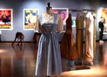 A dress worn by Judy Garland in her role as Dorothy in the movie ‘The Wizard of Oz’ has sold for $2.17 million at an auction in New York.