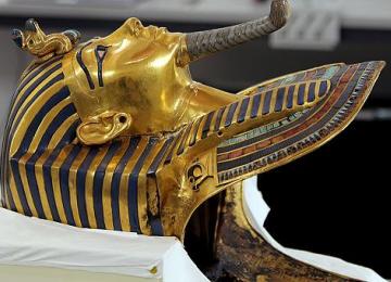 The bandages are about to go on the golden mask of Tutankhamun,…
