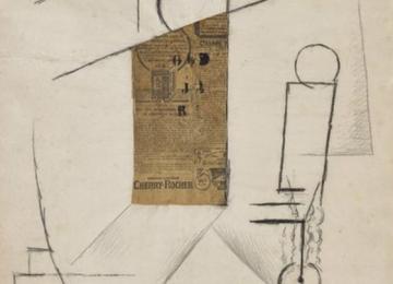 The cubist collage ‘Bottle and Glass on a Table’ was created in 1912. Only about 30 of the…