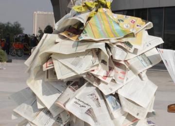 Arezoo Eskandari, clothes designer, presented her conceptual work of art, a newspaper dress, at the 4th City of Art Exhibition and Festival at Tehran Milad Tower.