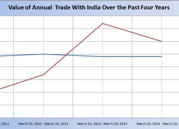 EconomyAlthough imports from India have experienced ups and downs over the past four years, exports to the country have remained more or less the same.